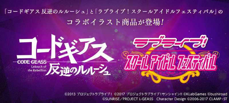 「コードギアス 反逆のルルーシュ」と「ラブライブ!スクールアイドルフェスティバル」のコラボイラスト商品が登場!