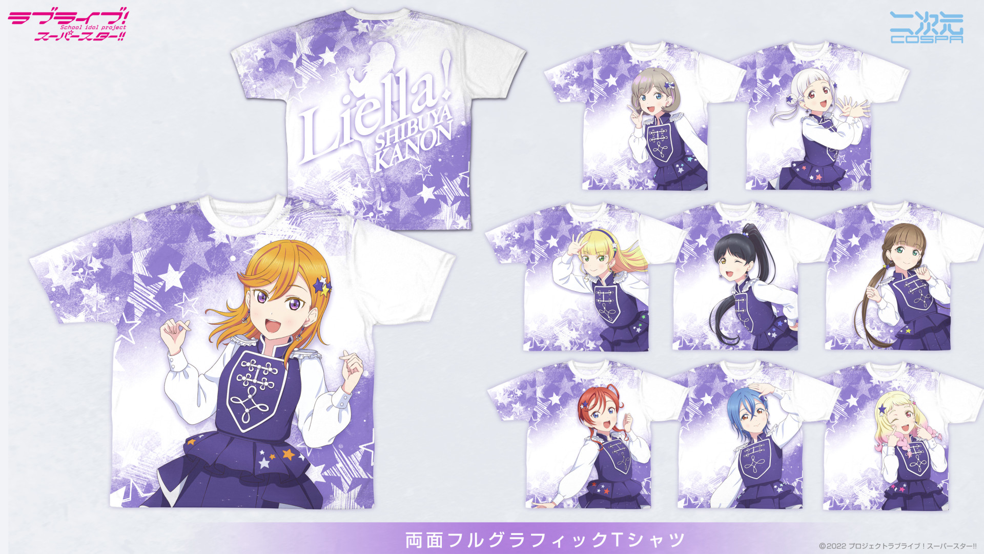 『ラブライブ!スーパースター!!』「Sing!Shine!Smile!」衣装の『Liella!』が「両面フルグラフィックTシャツ」など新グッズで二次元コスパから登場!